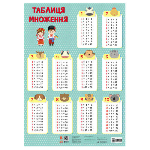 Учебный плакат – это очень удобный способ быстро вложить в память ребенка необходимые знания. Плакат поможет легко овладеть таблицей умножения. Назначен учителям начальной школы, детям и родителям.