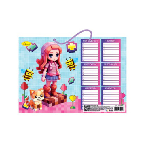Ламинированное расписание уроков "Minecraft" АП-0801-15 А4