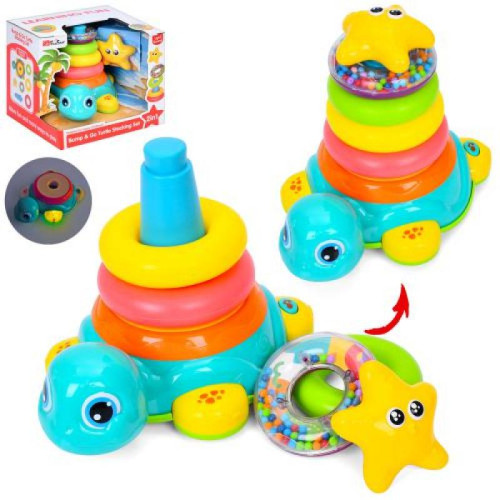 Пірамідка 22см, черепаха, їздить, кільця 5шт(1кільце-брязкальце), музика, світло, на бат-ці, в кор-ці,