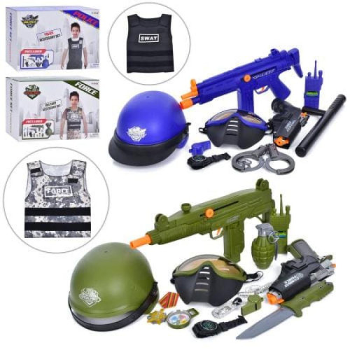 Набір зі зброєю, трещітка, автомат 37см, пістолет/револьвер (звук,світло, на бат-ці табл), жилет, каска, 2 види, в кор-ці, 36330-40