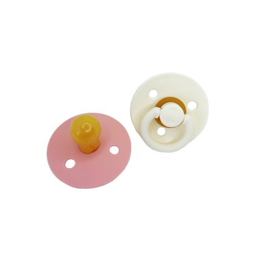 Латексная пустышка круглой формы. 2 штуки в наборе - это делает покупку более удобной и выгодной. Рекомендуемый возраст использования: 12+ месяцев. Производитель рекомендует менять пустышку на новую каждые 4-6 недель. Нежные пастельные цвета. Щиток с отверстиями для предупреждения раздражения кожи вокруг ротика. Кольцо для крепления держателя.