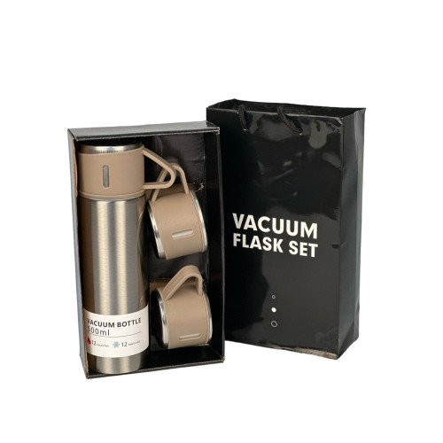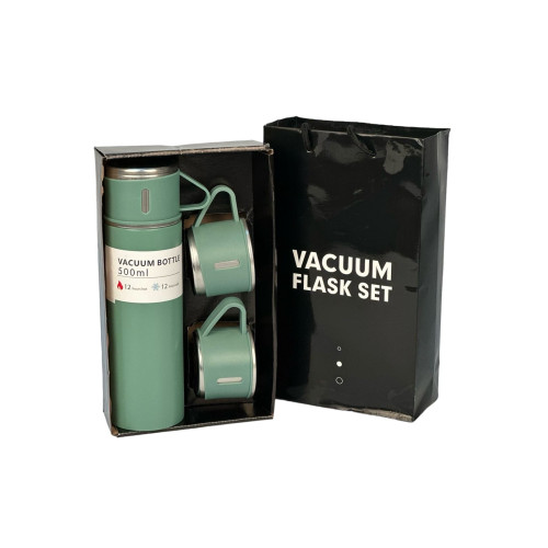 Термос Vacuum Bottle 500 мл - це набір з високоякісної нержавіючої сталі, що включає сам термос об'ємом 500 мл та дві чашки. Завдяки подвійній вакуумній ізоляційній технології, термос здатний утримувати напої теплими протягом 8 годин, що робить його ідеальним для подорожей чи активного відпочинку. Чашки також виготовлена з нержавіючої сталі, що гарантує її міцність і довговічність. Цей набір стане відмінним подарунком для любителів активного способу життя. Має гарне упакування.