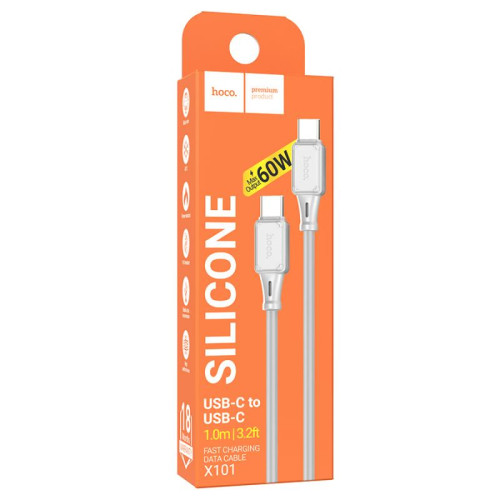 Кабель HOCO X101 Assistant 60W silicone charging data cable Type-C to Type-C, сірий, 93849