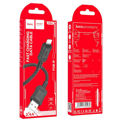 Кабель HOCO X94 iPhone5 Leader 1м, чорний, 93700