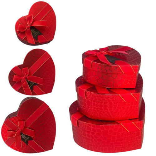 Набір подарункових коробок "Серця", 3 шт, червоного кольору.