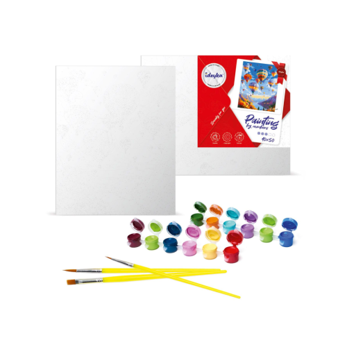 - Соковита палітра пронумерованих, акрилових фарб в контейнерах.