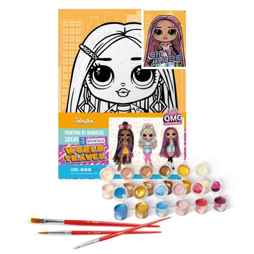Картины серии "World Travel" - это возможность рассмотреть каждую куклу во всей красе: продуманные до мелочей детали нарядов, выразительные лица и модные акценты. Набор для творчества с красивым сюжетом на холсте и всем необходимым для создания готовой картины: натуральное полотно на подрамнике с галерейной натяжкой; 3 нейлоновые художественные кисточки; сочная палитра пронумерованных, акриловых красок (металлизированные и обычные) в контейнерах; инструкция. На картине нанесена схема контуров изображения с нумерацией. Сегменты дополнительно окрашены в тон цветов, которым необходимо окрашивать полотно.