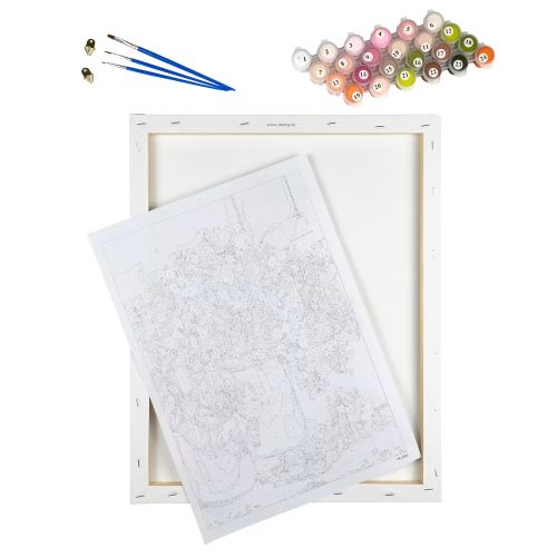 Комплектация: Холст на подрамнике с галерейной натяжкой, бумажная инструкция с контурным рисунком картины, нейлоновые кисти, палитра акриловых красок в контейнерах