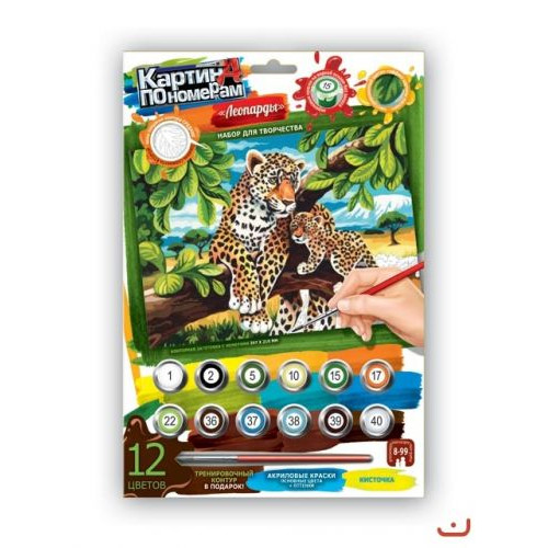 Картина по номерам (297х210 мм). В наборе: 12 акриловых красок (основные цвета + оттенки), кисточка, контурная заготовка 2 шт., инструкция._