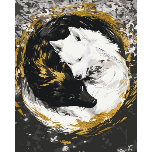 • КАРТИНА ПО НОМЕРАМ С КРАСКАМИ МЕТАЛЛИК "ПАРА ВОЛКОВ" 40х50 см