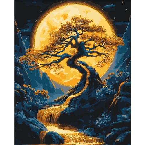 • Картина по номерам с красками металлик "Пейзаж. Дерево" 40х50 см