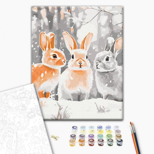 Картина по номерам "Зайки в зимних шубках" 40x40 см.