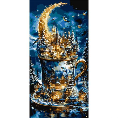 Картина по номерам с красками металлик "Рождественский сказочный город" 40х80 см
