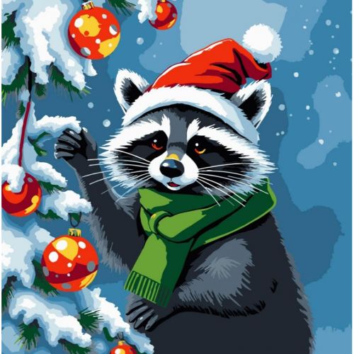 Картина по номерам "Енот украшает елку" 30х30 см