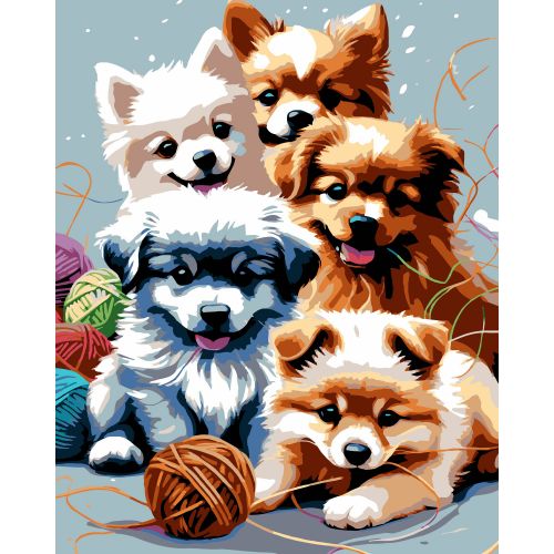 • Картина по номерам "Играющие щенки" 40х50 см