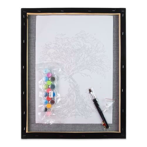 Комплектация: Холст на подрамнике с галерейной натяжкой, бумажная инструкция с контурным рисунком картины, нейлоновые кисти, палитра акриловых красок в контейнерах