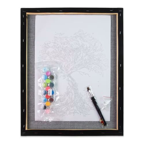 Комплектация: Полотно на подрамнике с галерейной натяжкой, бумажная инструкция с контурным рисунком картины, кисти нейлоновые, палитра акриловых красок в контейнерах