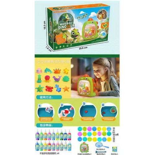 Игровой набор для творчества в виде аквариума с динозавром (18 х 6,5 х 15 см), с подсветкой. В комплекте порошок активатор, гель, формочки, щетка, сачок и гидрогель (орбизы). Смешайте порошок с водой, заполните формочки гелем, опустите их в активатор, и фигурки застынут в форме животных. Готовые фигурки можно разместить в аквариуме и наблюдать за ними, наслаждаясь удивительным миниатюрным морским миром.