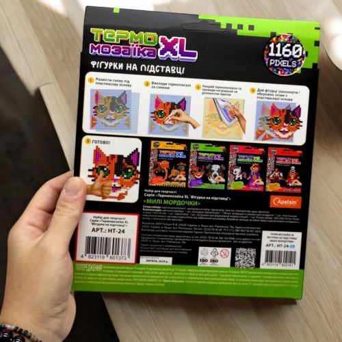 Набор для творчества "Термомозаика", с которым ребенок сможет собрать фигурку на подставке. Термомозаика – это мозаика из пластмассовых разноцветных бусин цилиндрической формы. Эти бусины одеваются на основу – специальные планшеты с короткими штырьками, а затем проглаживаются утюгом через термобумагу (кальку). При высокой температуре верхний слой пластика плавится, и бусины скрепляются между собой.