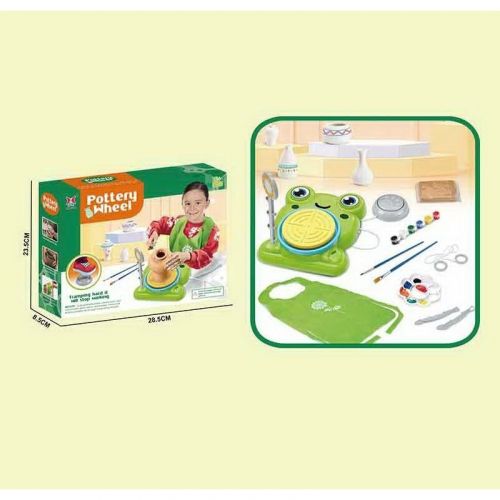Набор для гончарства "Лягушка" электрический круг для гончарства, от сети, глина, инструменты, краски, палитра, кисточки, фартук, в коро