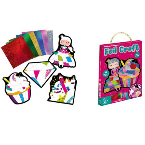 Яркий набор для творчества, с которым можно создать блестящие картинки из цветной фольги. Чтобы создать картинку, нужно снять защитный шар с выбранного участка трафарета, приложить к нему фольгу и осторожно отделить фольгу от картинки. В наборе есть 4 картинки и 18 листов фольги.