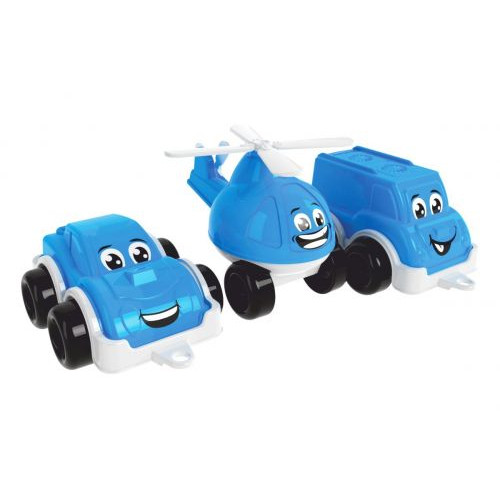 Набор состоящий из трех машинок для игры в песочнице. В наборе: автомобиль, микроавтобус, вертолет.