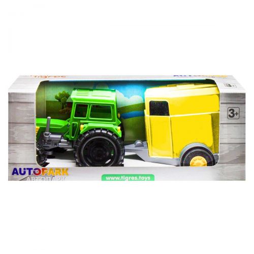 Трактор - это отличный подарок для мальчика, который увлекается техникой. Данная модель трактора имеет прицеп и сам трактор, которая способна поворачиваться в стороны и подниматься. Игрушка изготовлена из качественного пластика, который является безопасным для ребёнка. Внутри прицепа есть лошадь. _