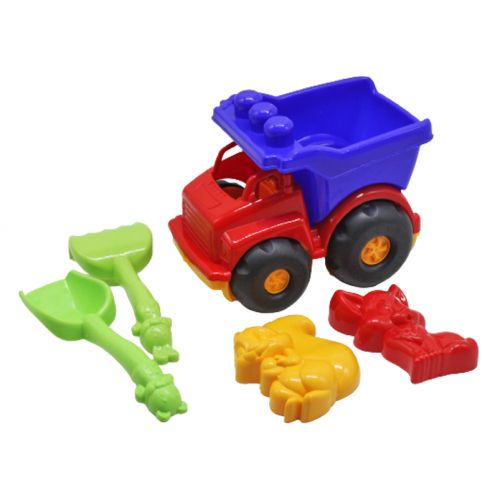 Машинка "Самосвал Тотошка" (лопатка, грабельки, формочки-пасочки 2 шт. в комплекте). Пластик.