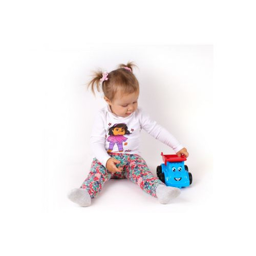 Игрушка имеет веселый дизайн с изображением персонажа, что делает ее привлекательной для малышей. Во время игры ребенок может перевозить песок, мелкие игрушки или другие предметы, создавая свои сюжетные истории. Модель изготовлена из пластика, не требует батареек и подходит для игры дома, в песочнице или на прогулке. Рекомендован для детей от 1 года.