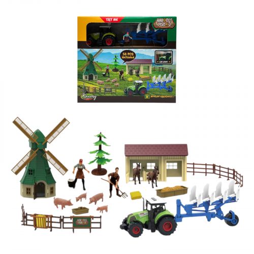 Ферма 58 элементов, трактор на батарейках, звуки, подсветка, игровые фигурки, ветряная мельница, дом, в коробке