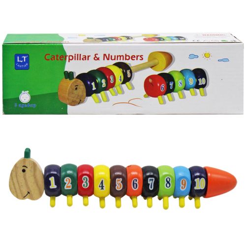 Яркая деревянная игрушка в виде гусеницы. Состоит из 10 пронумерованных секций. Голова и хвостик гусеницы откручиваются, что позволяет снимать секции и расставлять их в разном порядке. Такие игры помогут ребенку легко и весело научиться считать. Размер игрушки: 26х4х5 см.