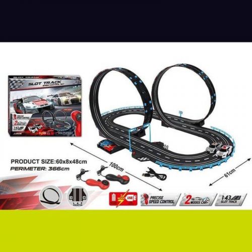 Трек на радиоуправлении трасса 61х100 см, подсветка, 2 машинки, мертвая петля, 2 пульта управления, подключение к трассе с помощью провода, от б