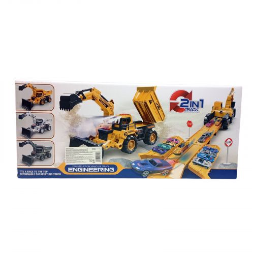 Трек 2 металлопластиковые машинки, спецтехника, подвижный ковш, звуки, мелодия, подсветка, в коробке