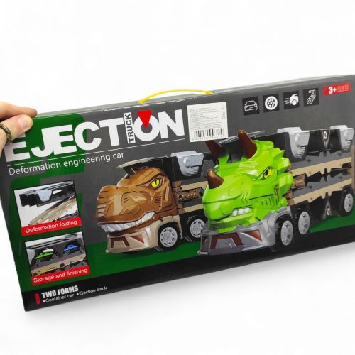 Трейлер-монстр-трек "Динозавр" запуск с металлическими машинками (кор.46,5*11*23 см)