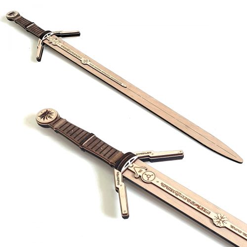 Выполнен в стилистике серебреного меча Ведьмака - популярного героя серии романов. Изготовлен из экологически чистого, шлифованного дерева. Детализированный и очень похож на меч из первоисточника. Длина - 73 см. _