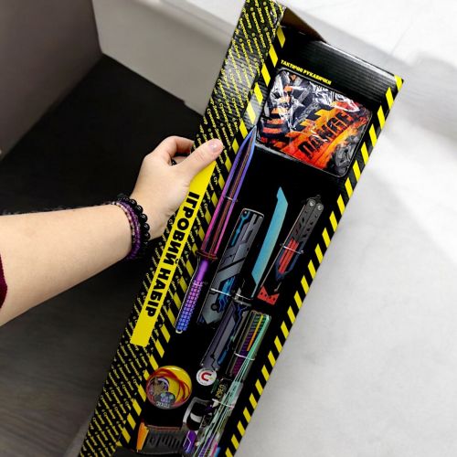 Детский игровой набор "BIG BOX" — идеальное решение для любителей активных игр и безопасных баталий! Особенно набор понравится фанатам игр CS:GO и Counter-Strike 2. В комплект входят: деревянный резинкострел c резинками, тренировочные сувенирные ножи, тактические перчатки и стильный брелок. *Расцветка может отличаться от указанной на фото.