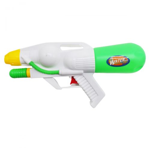 Водное оружие. Вода заливается в специальный резервуар, который крепится к пистолету. С накачкой. Выполнено из качественного пластика.