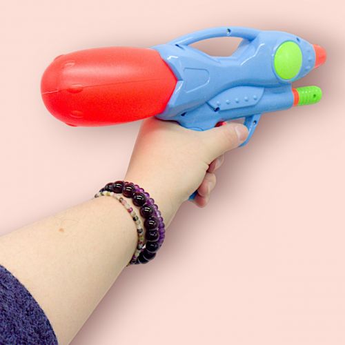 Пластиковый водный пистолет небольшого размера. Чтобы пистолет стрелял, нужно заполнить водой специальный отсек. Размер пистолета – 26х13х5 см. Прекрасно подойдет для активного отдыха на улице. Выполнены из качественных и безопасных материалов. Для детей старше трех лет.