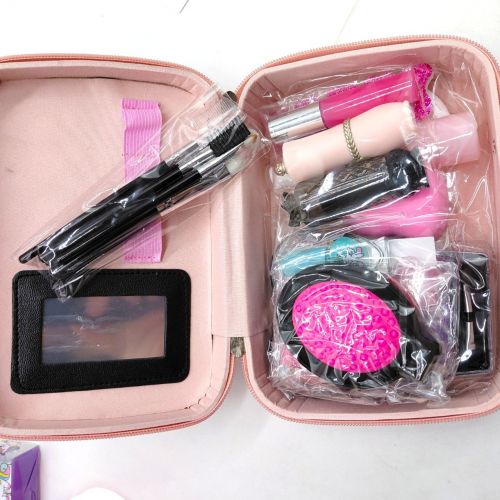 Комплектация: • Тени для век • Блеск или помада для губ • Аппликаторы или кисточки • Зеркальце • Чемодан для хранения