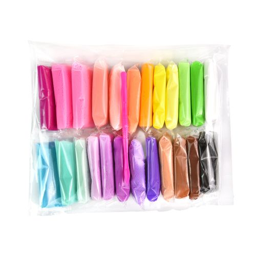 Набор воздушного пластилина для детского творчества. Самозастывающий пластилин очень пластичный, мягкий и легкий. Не прилипает к рукам, одежде и мебели. Застывает на воздухе в течение 3-5 часов. В таком виде легкий и упругий. В наборе 24 брикетика (и 24 цвета соответственно) воздушного пластилина по 6 г, а также инструмент для лепки.
