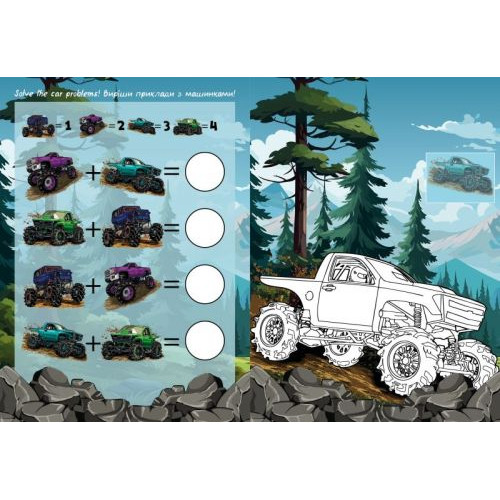 Возраст: 4-8 лет. Подарите ребенку не просто раскраску — подарите яркую историю! Книжка-раскраска со стикерами - Внедорожник для вашего творчества. Сделано в Украине.
