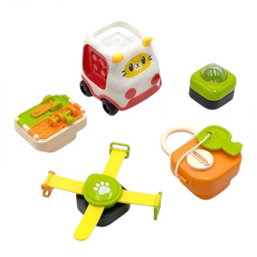 Бизиборд в виде кото-автомобиля. Имеет четыре стороны, в которые можно закрепить детали игрушки в любой последовательности. Состоит из замочка с ключом, погремушкой с шариками, пропеллером в виде скрепляющихся между собой полосок и отсеком с закрытыми буквами — надо постараться открыть все окошки, чтобы до них добраться. Благодаря подвижным элементам игрушка развивает мелкую моторику, логику и сенсорное восприятие ребенка. Выполнена из качественных и безопасных материалов. Рекомендовано для детей от 18 месяцев.