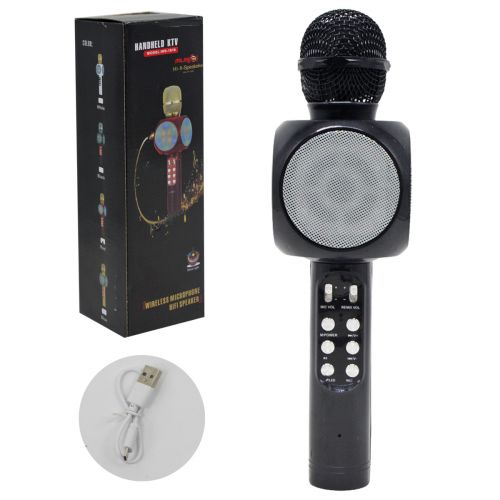 Беспроводной микрофон-караоке. Подключается к смартфону с помощью Bluetooth. Можно использовать как обычный микрофон, так и как портативную колонку. Проигрывает музыку со смартфона и позволяет петь под них, записывая свои композиции (встроенный слот для карты памяти). Имеет разъём для подключения наушников. Можно включить микрофон с эффектом эха. Есть разноцветная яркая подсветка, которую при необходимости можно выключить.