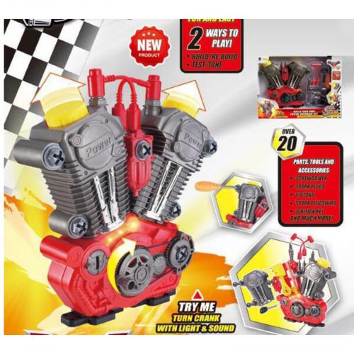 Музыкальный двигатель, конструктор, имитация зажигания двигателя, подсветка, звуки, подвижные элементы, в коробке