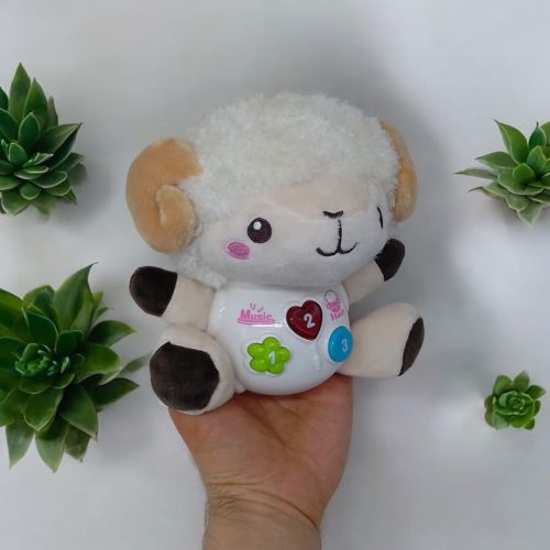 Милая игрушка в виде баранчика. Тело пластиковое, остальное из мягкого и приятного материала. Оснащена тремя кнопками: звуки природы, забавные звуки и колыбельные мелодии. Есть мягкая подсветка для комфортного засыпания. Работает от 2-х батареек ААА (нет в комплекте).