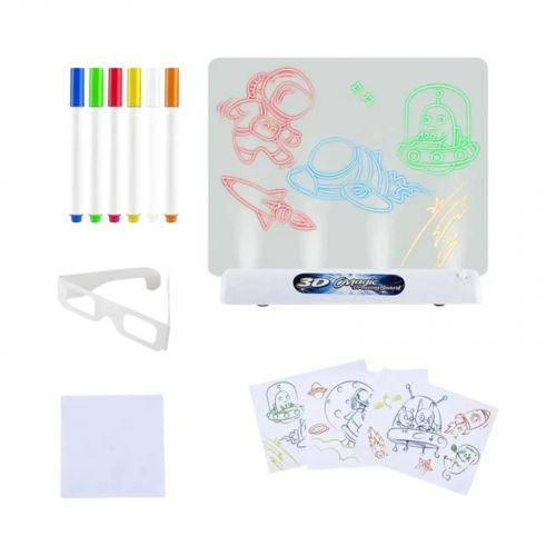 Доска для рисования подсветки, 7 трафаретов, 4 маркера, 3D очки, в коробке