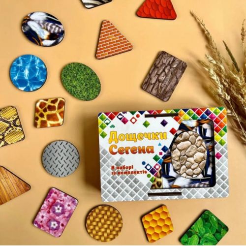 Размер дощечки: 10х7,5 см. В комплекте 18 разноцветных рамок-вкладышей для геометрических фигур. Предложите малышу найти для каждой геометрической фигуры свой «домик» – рамочку. Обратите внимание ребенка на то, что фигурка должна совпадать с нужным домиком не только по форме, но и по узору. Обязательно произносите названия геометрических фигур, таким образом малыш запомнит их легко и быстро. Найдите одинаковые геометрические фигуры, сосчитайте их.