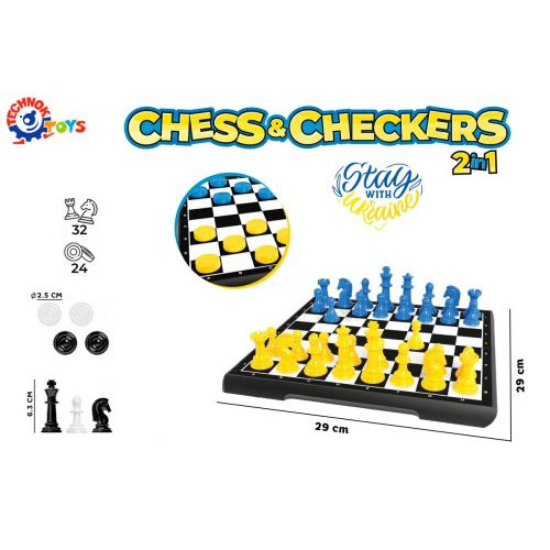Комплектация: Игровое поле, 32 шахматы, 24 шашки