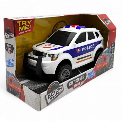 Машинка «Полицейская» является идентичной репликой настоящей полицейской машины - игра с которой научит ребенка как они работают в настоящем мире. Инерционная, оснащена звуковыми эффектами (звуки двигателя, сирена) и подсветкой мигалок.