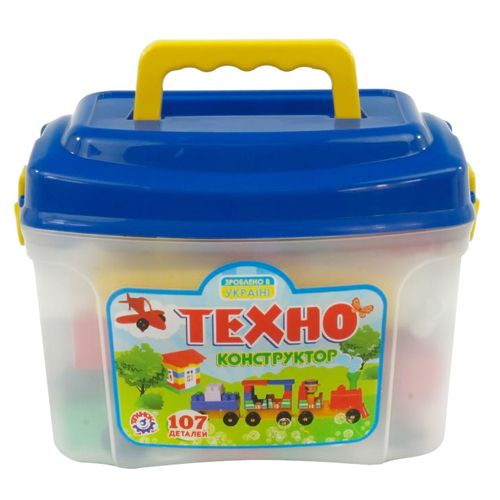 Конструктор "Техно" в саквояже, 107 элементов, (тип Лего, собираем транспорт, домик). Упакован в красивую коробку-чемоданчик. Выполнен из качественного пластика. Для детей от 3-х лет.